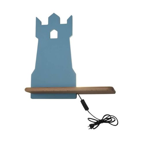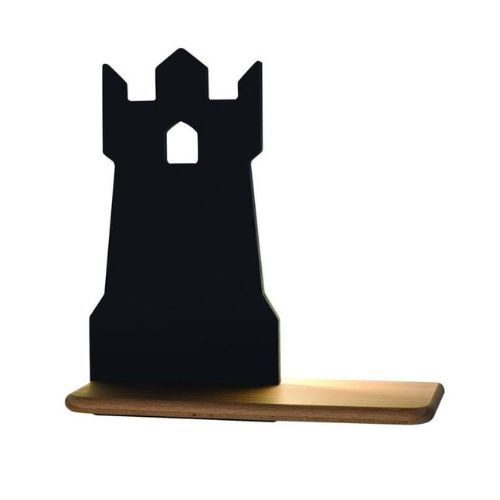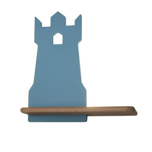 - Este compusă dintr-o poliță realizată din lemn în culoarea naturală și dintr-un element realizate din metal în formă de turn, disponibil în două variante de culoare: albastru sau negru.