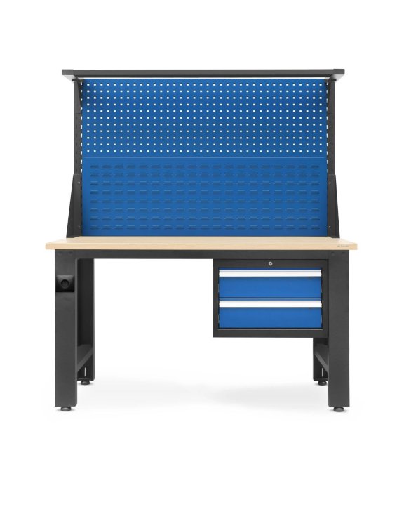 Bancul de lucru este fabricat din profile de oțel închise acoperite cu pulbere în culorile antracit și albastru, cu o grosime de 1,5 mm. Stratul de pulbere protejează piesa de mobilier de rugină și de deteriorări mecanice.