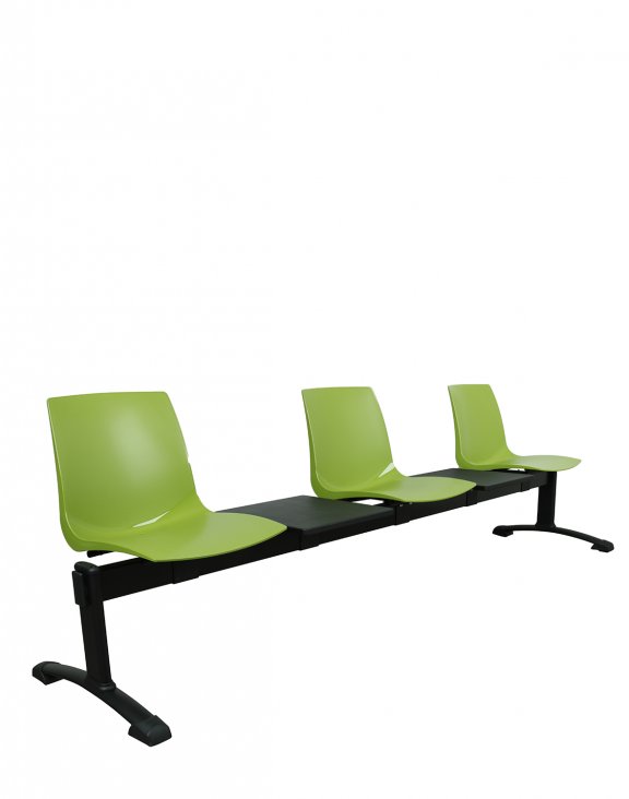 Bancă Ari 5T cu trei locuri și două măsuțe de la Grospol pe un cadru din metal.