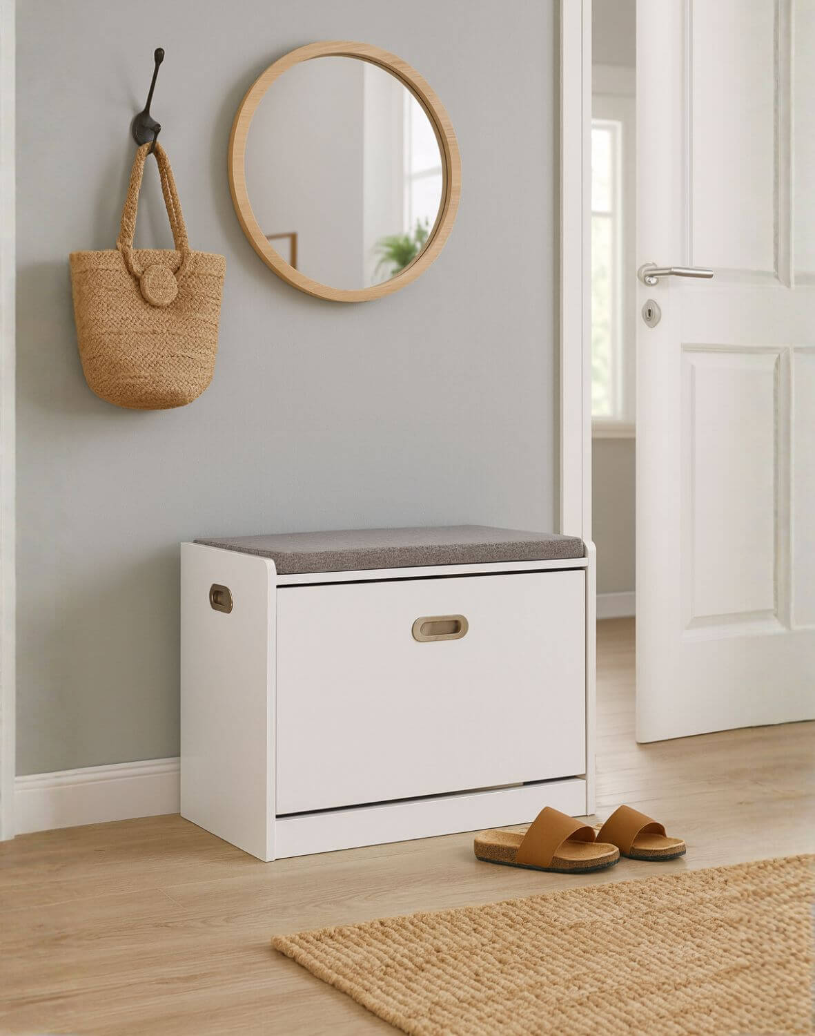 Forma sa compactă ajută la economisirea spațiului, oferind în același timp un loc convenabil pentru depozitarea încălțămintei, ferită de privirile oaspeților.