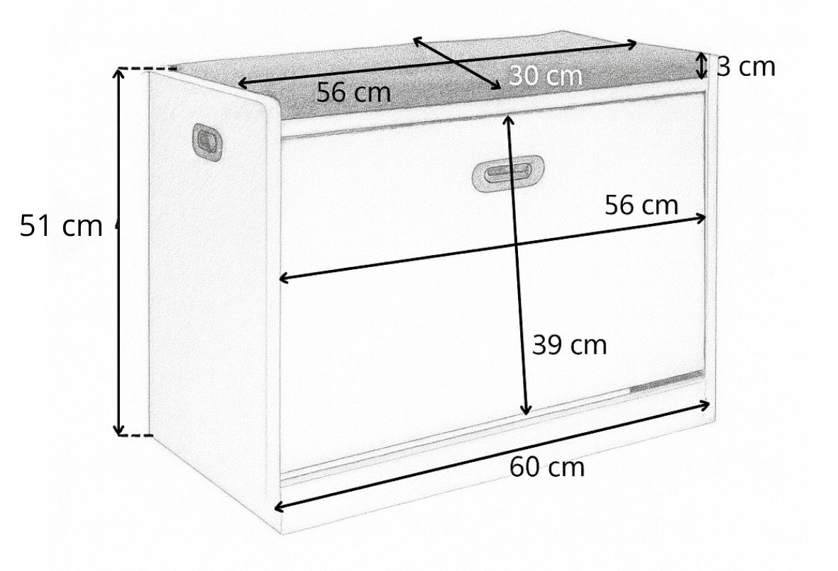 Banca pentru pantofi cu pernă Duna de la Avida Design este o soluție practică și estetică de depozitare, perfectă pentru hol, dressing sau o sală de așteptare.