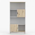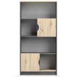 Disponibilă în două variante cromatice versatile – alb/stejar artizanal și gri/stejar artizanal – biblioteca se va integra perfect în orice amenajare interioară modernă.