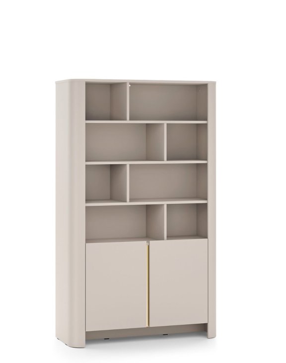 Biblioteca Bari cașmir cu accente aurii de la Piaski este o soluție elegantă de depozitare pentru sufragerie, dormitor sau birou, combinând aspectul modern cu funcționalitatea.
