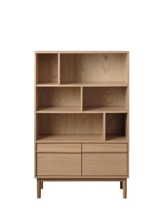 Datorită furnirului de stejar din compoziție și a designului său minimalist, etajera este potrivită pentru o varietate de interioare moderne.