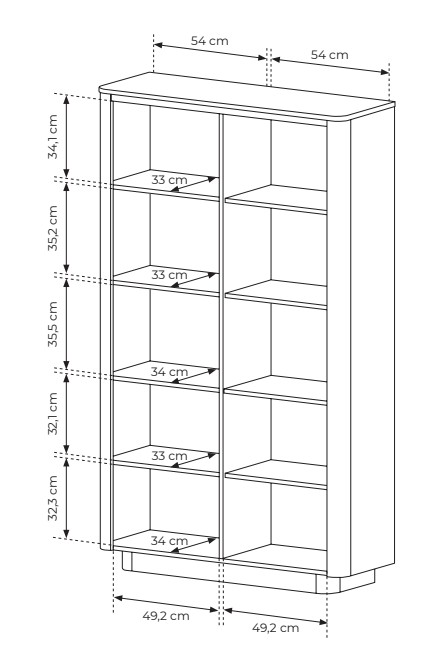 Oferă un spațiu amplu de depozitare, având trei compartimente cu uși (două cu deschidere clasică și unul cu dechidere în jos) și un raft deschis, ceea ce o face ideală pentru stocarea dispozitivelor multimedia, a colecțiilor de DVD-uri etc.