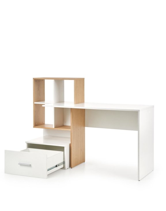 Biroul Grosso, în culorile alb și stejar auriu, de la Halmar, este un birou elegant și funcțional pentru camera unui copil sau a unui adolescent.