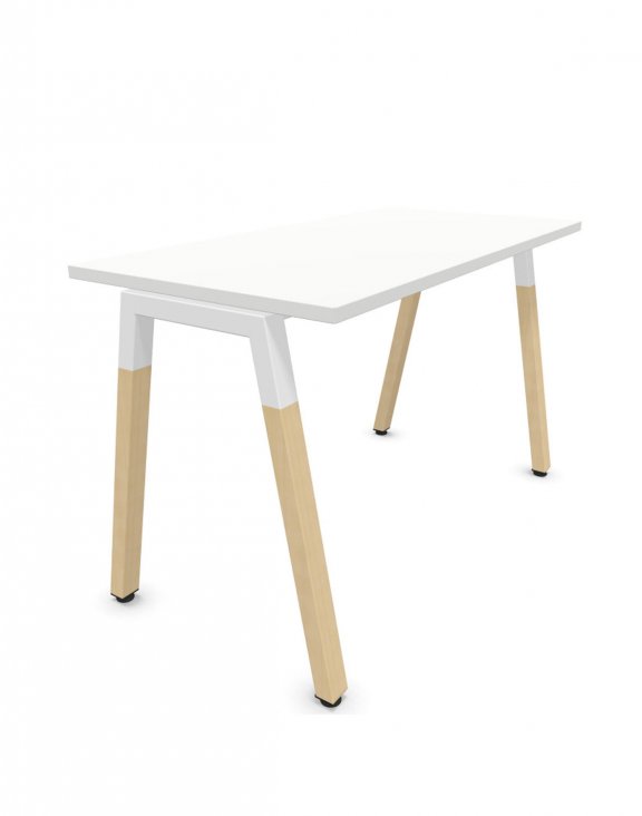Baza biroului este alcătuită din 4 picioare în forma literei „A”. Partea superioară a cadrului este realizată din profil de oțel, în timp ce partea inferioară este realizată din lemn masiv de fag.