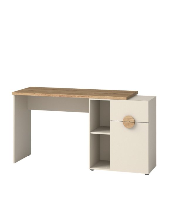 Biroul este echipat cu un compartiment cu rafturi interioare, un sertar compact și rafturi deschise menite să asigure o organizare inteligentă a obiectelor stocate.