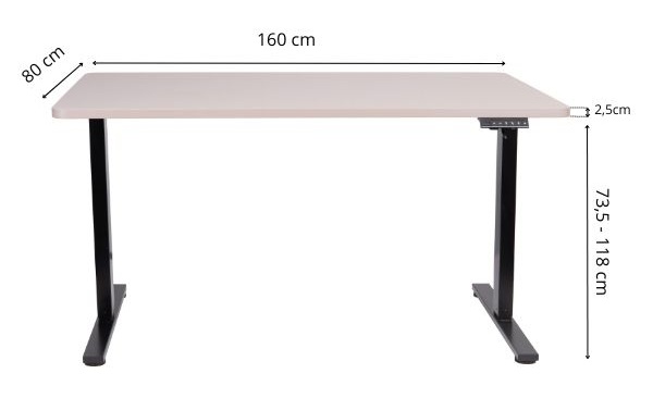 Intervalul de reglare a înălțimii cu ajutorul butoanelor intuitive este de la 73,5 cm la 118 cm, ideal pentru lucrul în picioare sau așezat. Înălțimea este afișată pe ecran.
