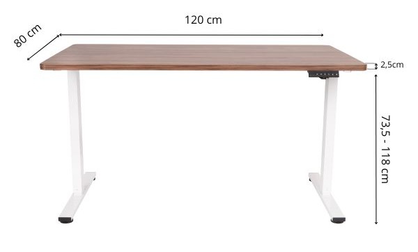 Intervalul de reglare a înălțimii cu ajutorul butoanelor intuitive este de la 73,5 cm la 118 cm, ideal pentru lucrul în picioare sau așezat. Înălțimea este afișată pe ecran.