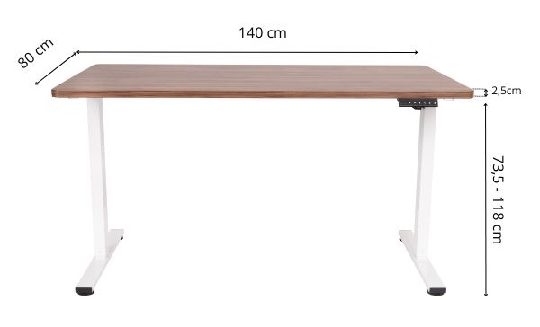 Intervalul de reglare a înălțimii cu ajutorul butoanelor intuitive este de la 73,5 cm la 118 cm, ideal pentru lucrul în picioare sau așezat. Înălțimea este afișată pe ecran.