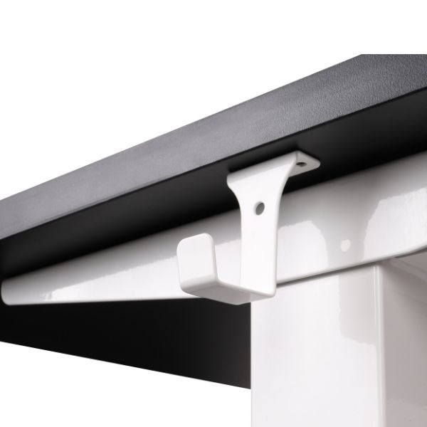 Biroul Alto poate fi echipat opțional cu un suport pentru monitor, care trebuie achiziționat separat, și cu un organizator de cabluri, care poate fi adăugat ca dotare suplimentară în coșul de cumpărături.