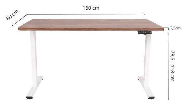 Intervalul de reglare a înălțimii cu ajutorul butoanelor intuitive este de la 73,5 cm la 118 cm, ideal pentru lucrul în picioare sau așezat. Înălțimea este afișată pe ecran.