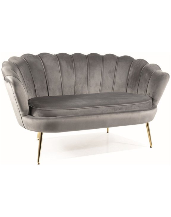 Cu o siluetă delicată, caracterizată de linii curbe care evocă grația unei scoici, cu picioare suple din metal auriu și cu pliseuri verticale decorative, această canapea dublă amintește de stilul Art Deco și de opulența anilor 1920.