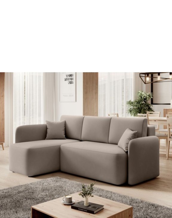 Canapeaua extensibilă Hadson de la Eltap este o piesă de mobilier modernă și confortabilă, cu formă „de colț”.