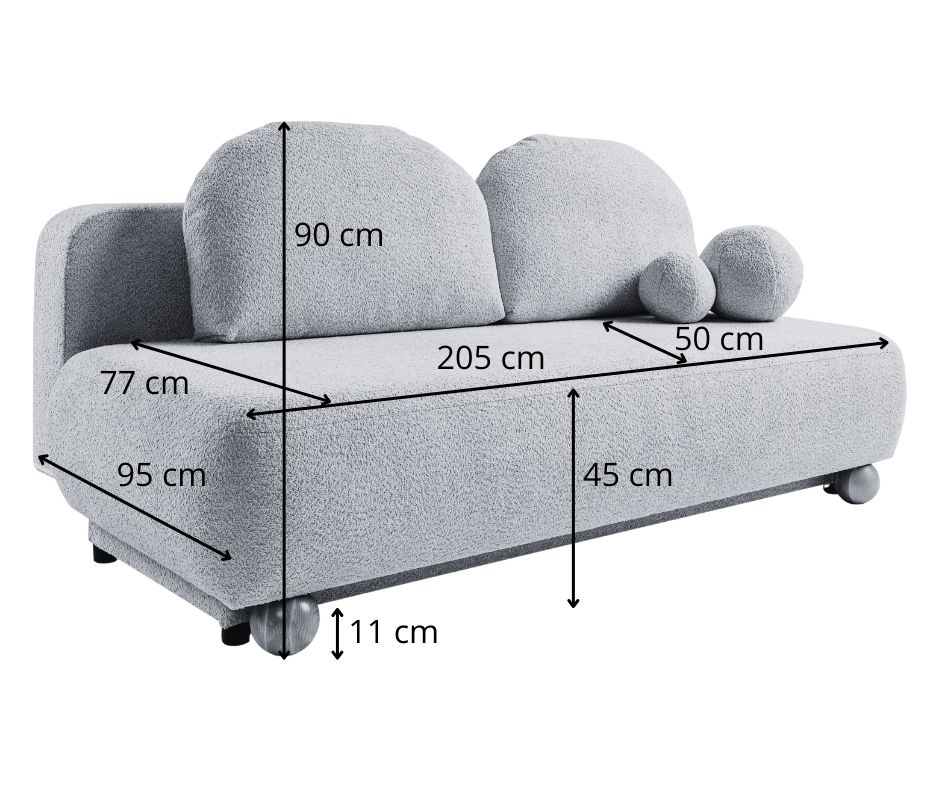 Canapeaua extensibilă cu picioare sferice Emily de la Pionier este o piesă de mobilier statement, care se remarcă prin designul său unic, cu linii fluide și forme rotunjite.