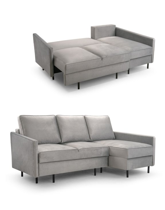 Canapeaua este extrem de practică, având două compartimente pentru lenjerie și o funcție de extindere care oferă o suprafață de dormit de 145x203 cm.