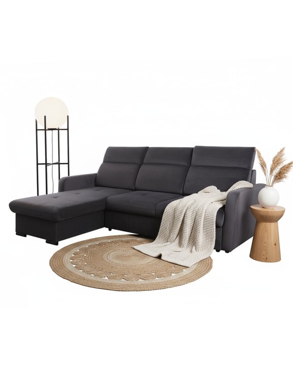 Canapeaua de colț este echipată cu o funcție de extindere cu mecanism Delfin convenabil, garantându-i o desfășurare facilă.