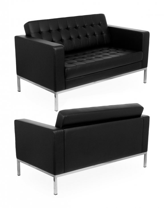 Canapeaua matlasată S2 cu două locuri, neagră și elegantă, este tapițată în piele ecologică de înaltă calitate.
