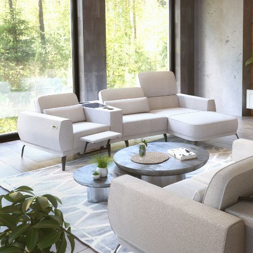 Colțarul cu bar, încărcare wireless și suport pentru picioare Velumo de la Dolmar reprezintă o opțiune excelentă pentru cei care apreciază estetica modernă, funcționalitatea ingenioasă și un confort de excepție.