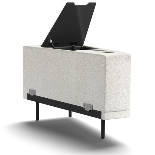 Un atu distinctiv al modelului Velumo este mini-barul discret integrat în structura sa, cu dimensiuni perfecte pentru o ceașcă de cafea, un pahar de vin, sau pentru a păstra obiecte esențiale la îndemână, precum telecomanda.