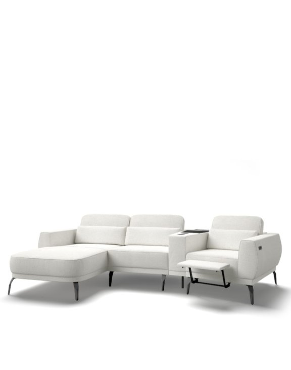 Ansamblul este completat de un suport modern pentru picioare, ingenios încorporat într-unul dintre module, care permite o poziție foarte comodă.