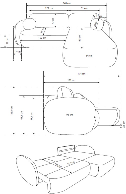 Folosind funcția de extindere DL, se obține o suprafață de dormit de 145×200 cm, ideală pentru oaspeții care rămân peste noapte sau pentru o siestă în timpul zilei.