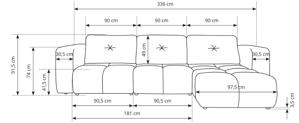 Colțar extensibil tip bubble Modi 03 (336 cm)