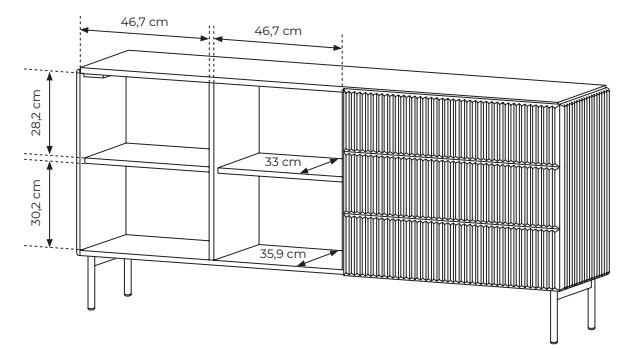 Comodă cu 2 compartimente și 3 sertare Muti (L) neagră