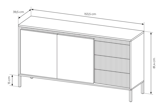 Dotată cu trei compartimente cu deschidere prin apăsare („push-to-open”) și cu rafturi interioare, este ideală pentru depozitarea diverselor obiecte, precum veselă, haine sau documente.