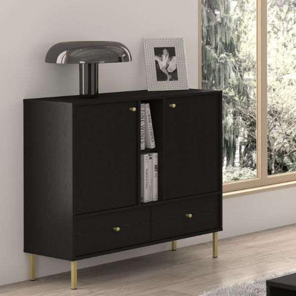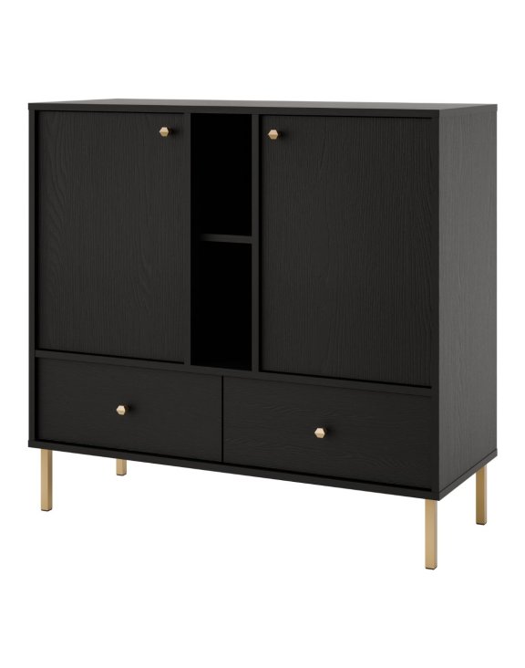 | Comodă cu 2 uși, 2 sertare și 2 rafturi deschise Tokyo 2 neagră | 976 RON |
