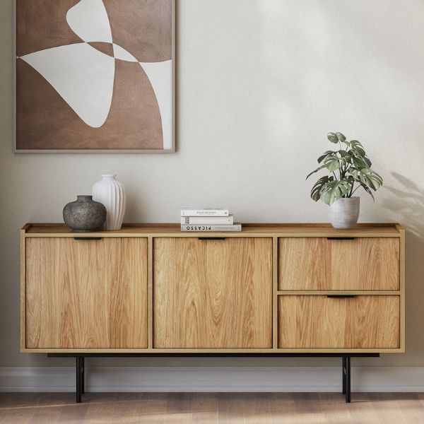 Aspectul său atemporal, în nuanța caldă și luminoasă de stejar hikora, contribuie la crearea unei atmosfere primitoare în casă, iar datorită soluțiilor sale practice este completarea ideală a sufrageriei, diningului sau a biroului.