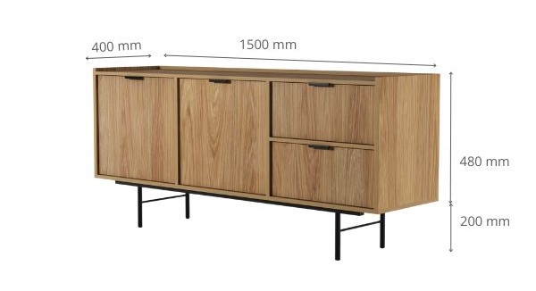 | Comodă cu 2 uși și 2 sertare Edison stejar hikora | 1265,65 RON |
