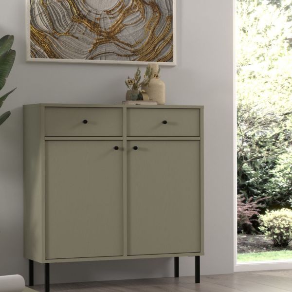 Comoda cu 2 uși și 2 sertare Tokyo 2, în culoarea verde eucalipt, de la Stolarz Lempert, va aduce un suflu nou în amenajarea casei tale.