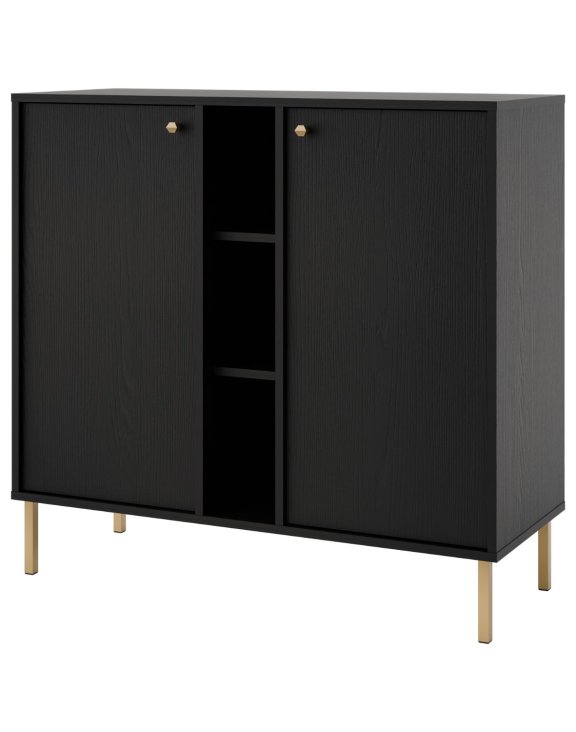 Comoda cu 2 uși și 3 rafturi deschise Tokyo 2, în culoarea neagră, de la Stolarz Lempert, va aduce un suflu nou în amenajarea casei tale.