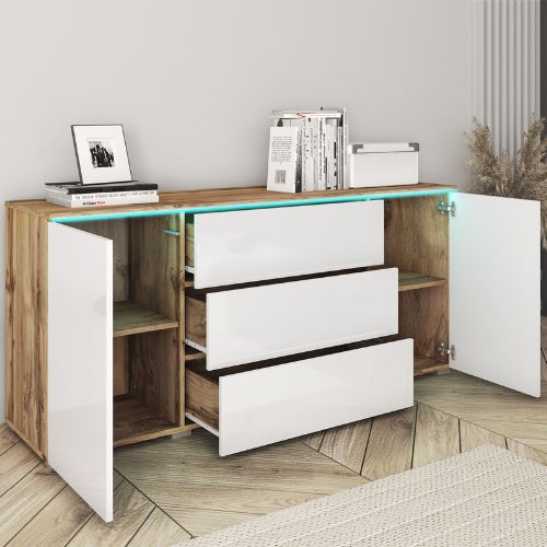 | Comodă cu 2 uși și 3 sertare Vera, stejar wotan/alb lucios (150 cm) | 1336 RON |