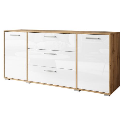 | Comodă cu 2 uși și 3 sertare Bogota, alb lucios/stejar wotan (150 cm) | 1336 RON |