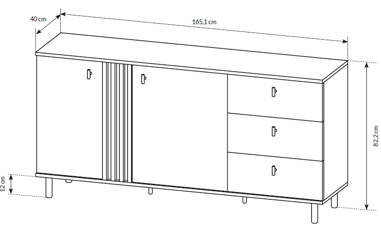 Comodă cu 2 uși și 3 sertare Madis, stejar artizanal/antracit