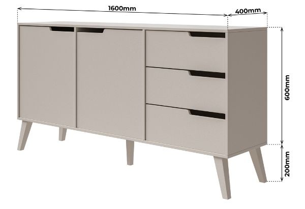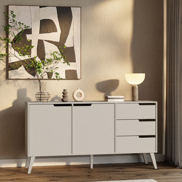 Comoda cu 2 uși și 3 sertare Nordelo cașmir de la Karol este spațioasă, inspirată din stilul Mid-Century Modern și construită pentru a rezista în timp.