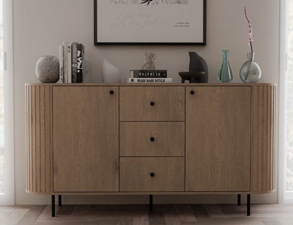 Datorită paletei sale rafinate de culori, respectiv stejar cremona și negru, comoda se integrează perfect în interioare primitoare și în tendințe, în diverse stiluri.