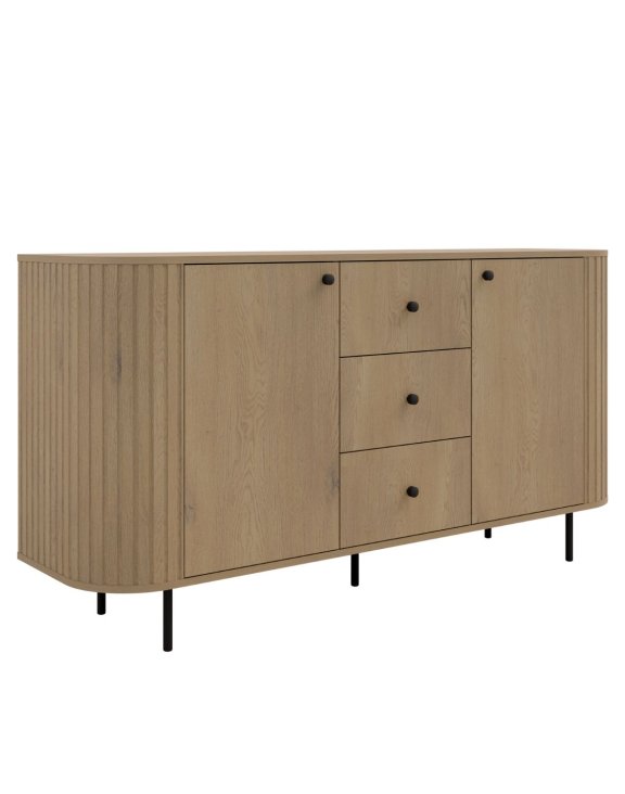 | Comodă cu 2 uși și 3 sertare Ovalio, stejar cremona/negru | 1701,18 RON |