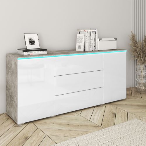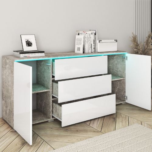 | Comodă cu 2 uși și 3 sertare Vera, beton/alb lucios (150 cm) | 1336 RON |