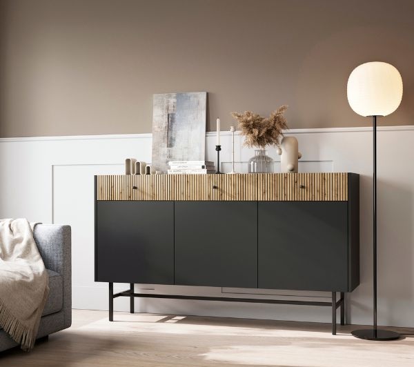 Culori – negru combinat cu stejar, un contrast unic, potrivit pentru orice tip de amenajare.