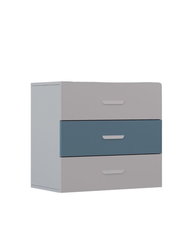 Comoda cu 3 sertare Lumi, în culorile cașmir și albastru, de la Karol, este o soluție de depozitare compactă, dar încăpătoare, destinată camerelor copiilor sau ale adolescenților.