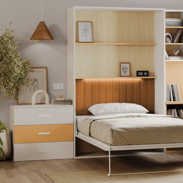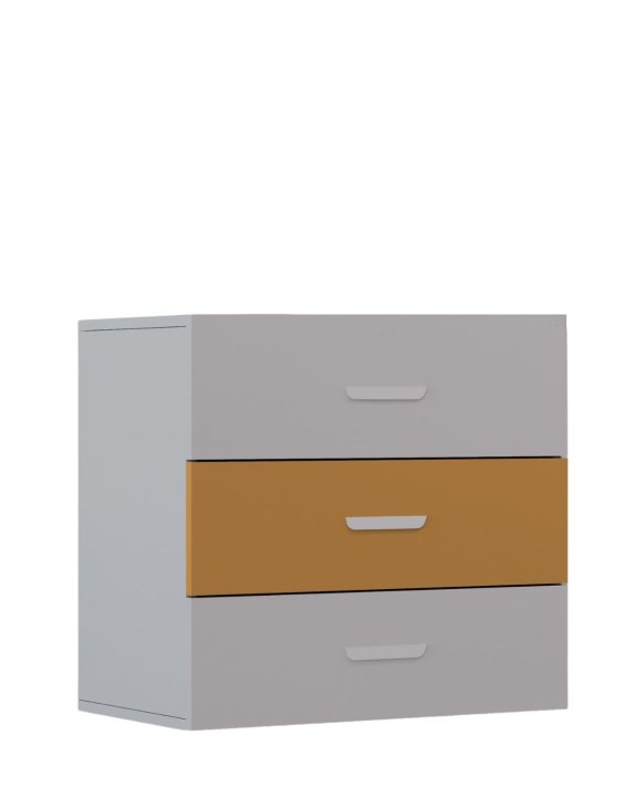 Comoda cu 3 sertare Lumi, în culorile cașmir și curry, de la Karol, este o soluție de depozitare compactă, dar încăpătoare, destinată camerelor copiilor sau ale adolescenților.