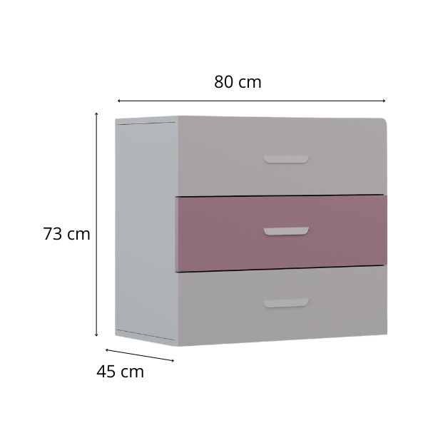Comoda cu 3 sertare Lumi, în culorile cașmir și roz, de la Karol, este o soluție de depozitare compactă, dar încăpătoare, destinată camerelor copiilor sau ale adolescenților.