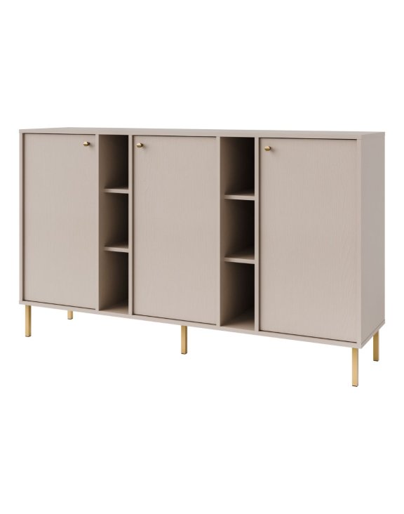 Comoda cu 3 uși și 6 rafturi deschise Tokyo 2, în culoarea bej nisipiu, de la Stolarz Lempert, va aduce un suflu nou în amenajarea casei tale.