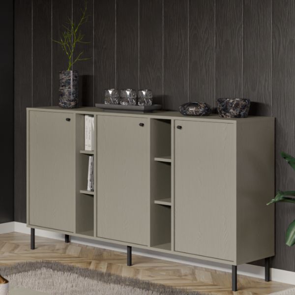 Comoda cu 3 uși și 6 rafturi deschise Tokyo 2, în culoarea verde eucalipt, de la Stolarz Lempert, va aduce un suflu nou în amenajarea casei tale.