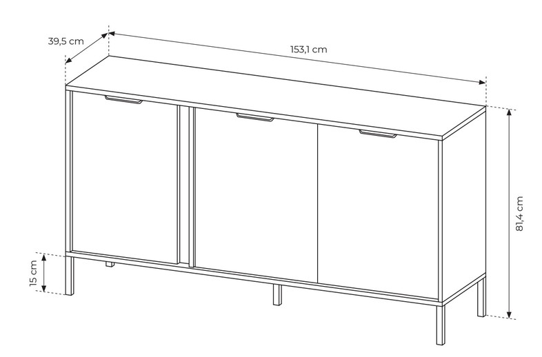 Comodă cu 3 uși Lars, antracit/auriu (153 cm)