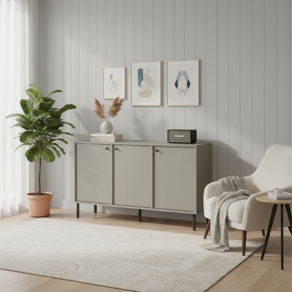 Această piesă de mobilier îmbină rafinamentul modern cu echilibrul calm al stilului Japandi, un amestec perfect între funcționalitatea scandinavă și minimalismul japonez, oferind o soluție de depozitare totodată estetică și practică.